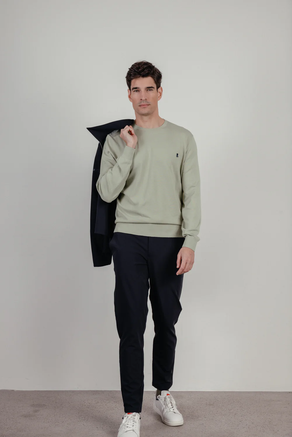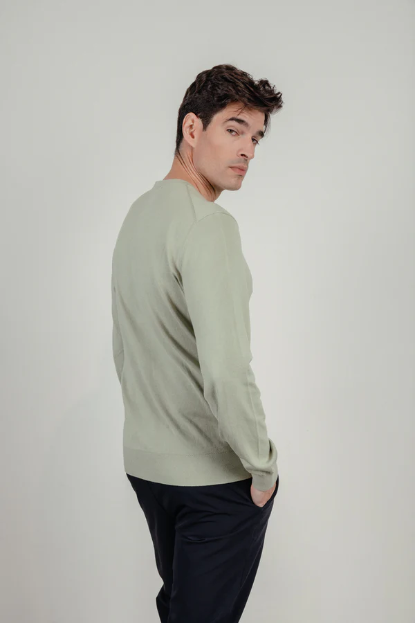 Jersey cuello redondo en color verde menta. Confeccionado en 100% algodón. Logo elPulpo bordado a contraste en el pecho. Rib en cuello, puños y bajo. Regular fit