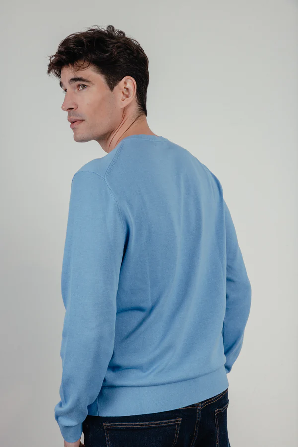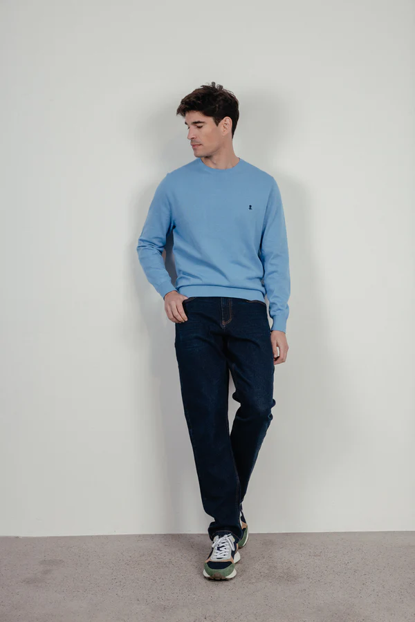 Jersey cuello redondo en color azul lavanda. Confeccionado en 100% algodón. Logo elPulpo bordado a contraste en el pecho. Rib en cuello, puños y bajo. Regular fit
